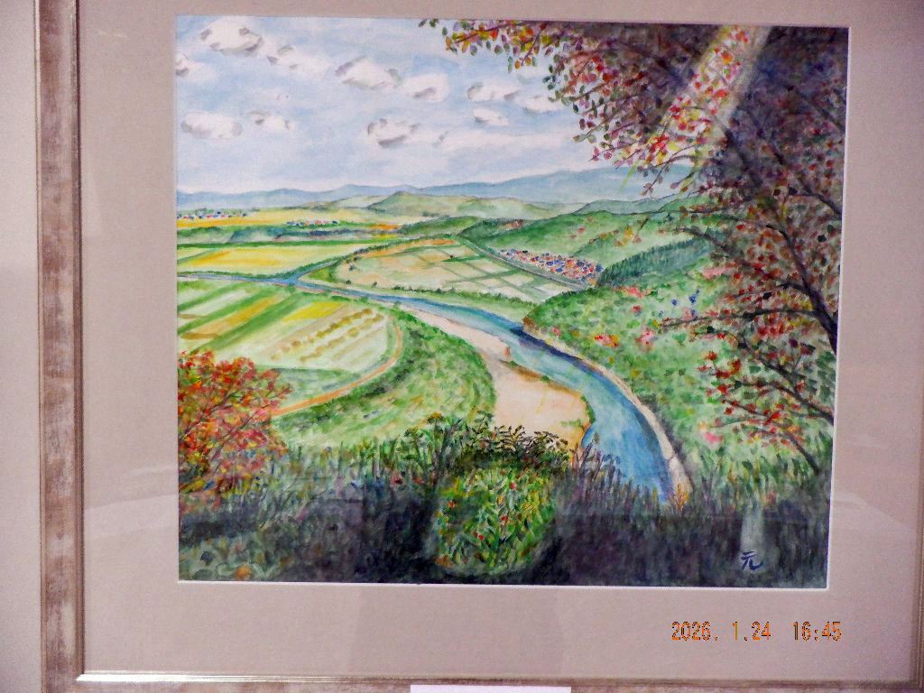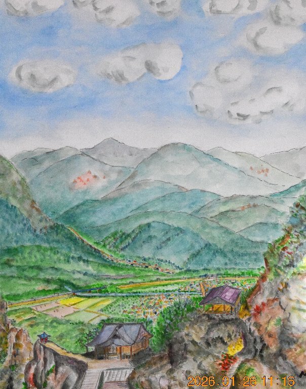 この絵の正面はるか向こうは真室川の町へと連なります。