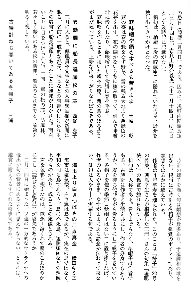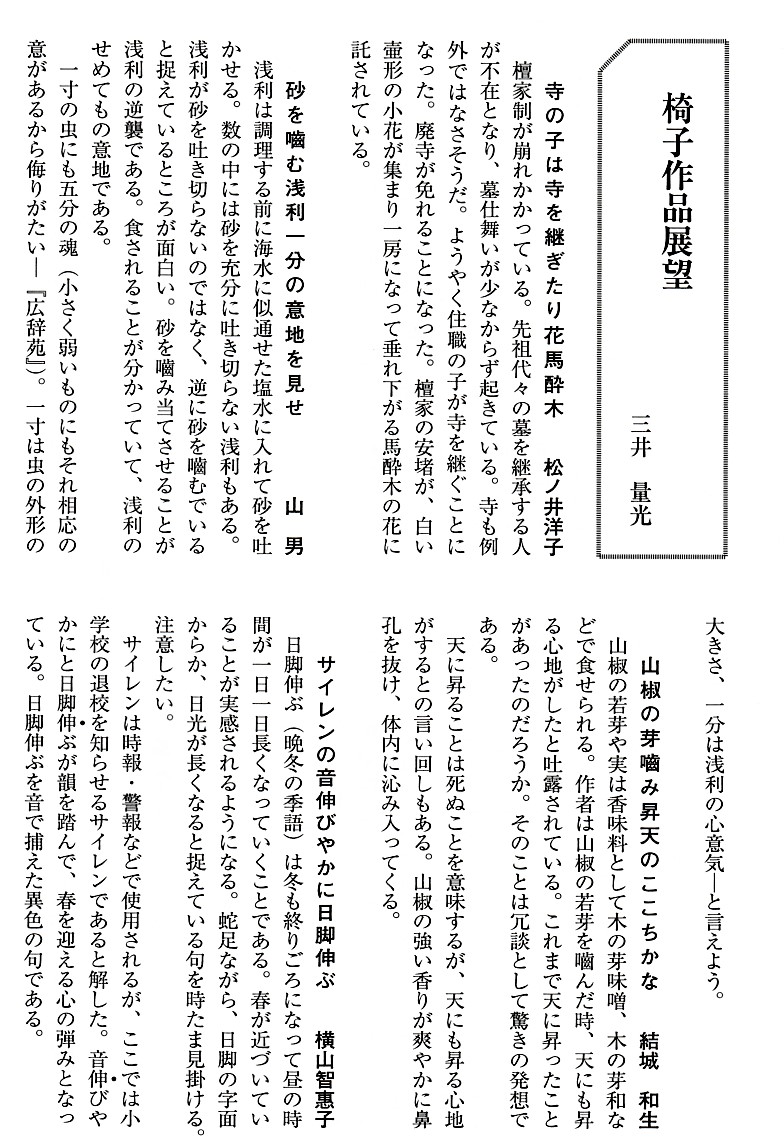 次に三井量光氏による自身の句が提示されている。