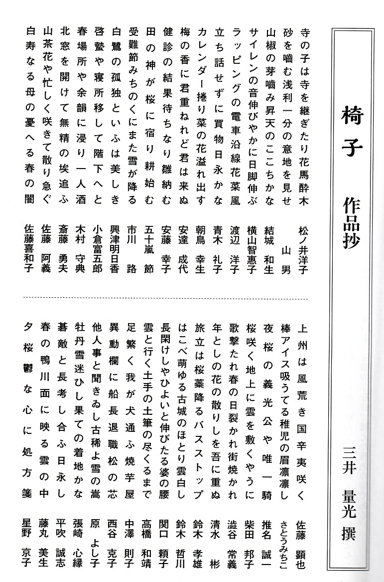 三井量光氏主宰俳句誌「椅子」第24号発刊さる