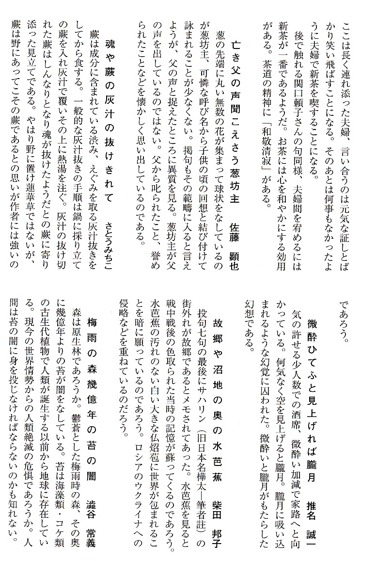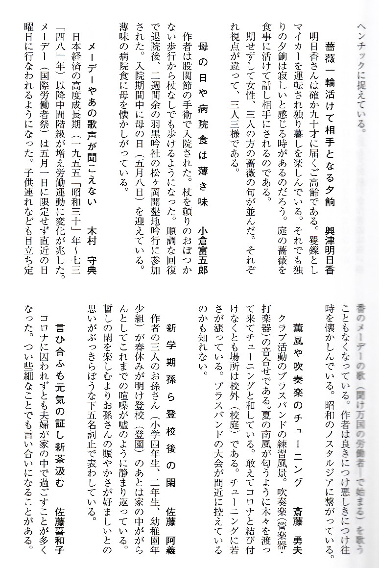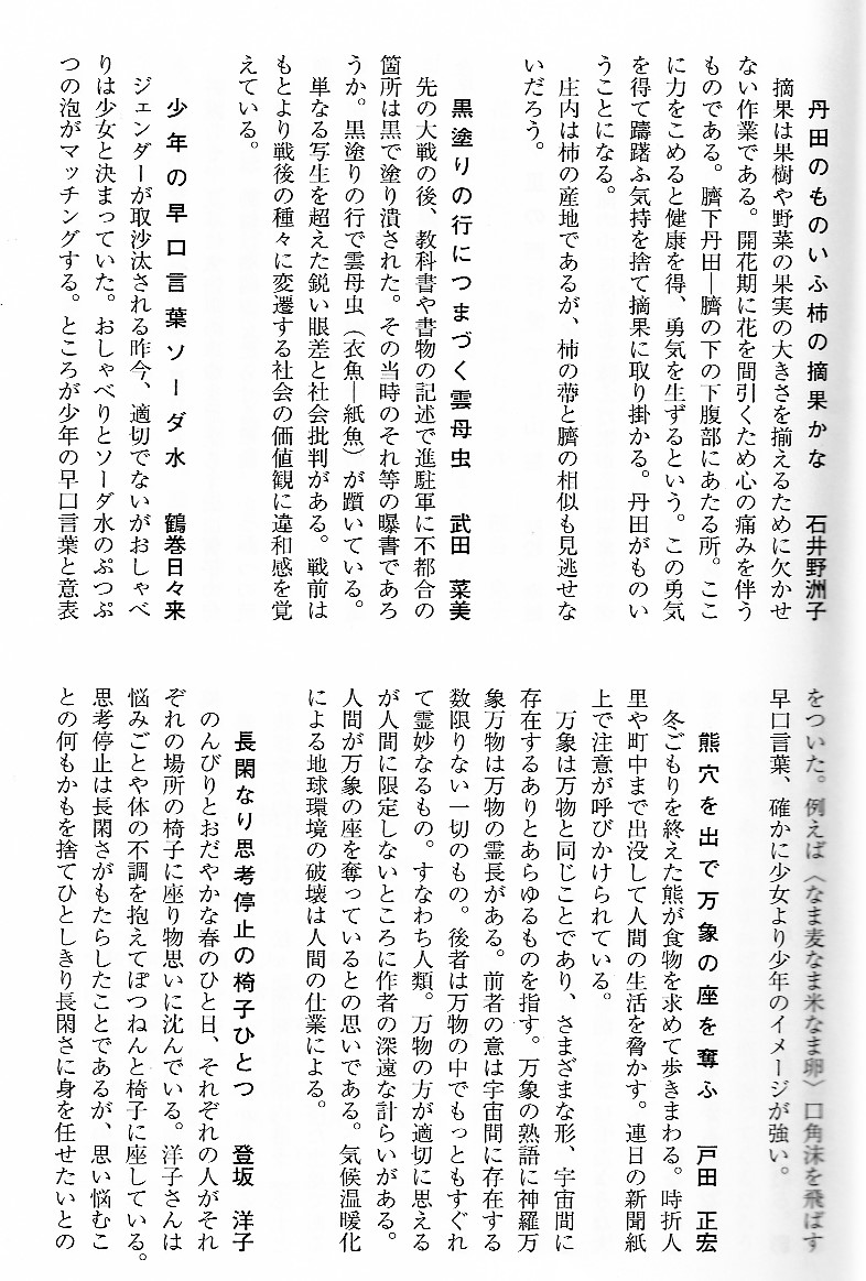 次からは会員の作品の中から量光氏が選んだ句の紹介と解説が続く。