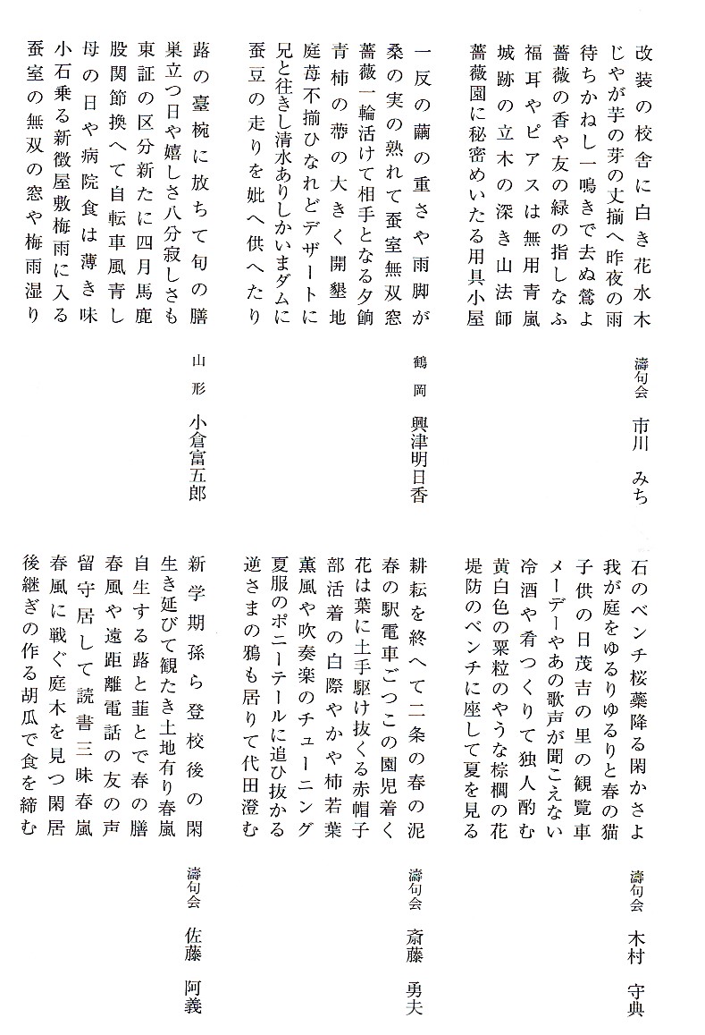 次からは会員の句の紹介へ移ります。一人七句を投句しています。