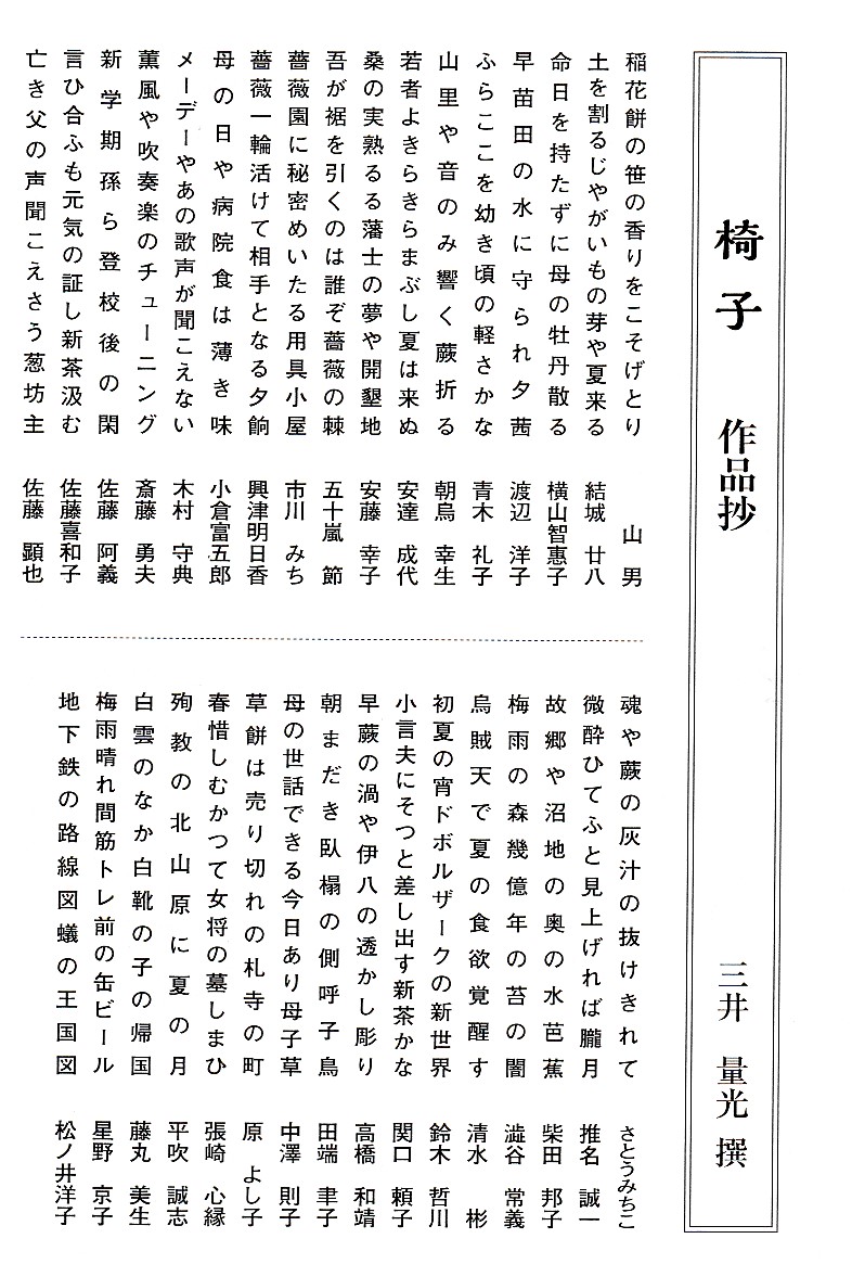 三井量光氏主宰俳句誌「椅子」25号発刊さる