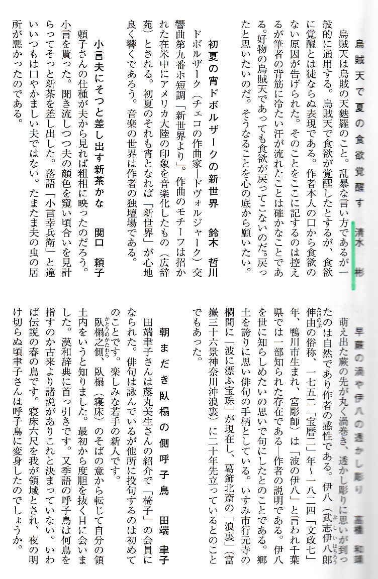 次のページに8月に亡くなられた清水 彬君の句が載っています。遺作になるのでしょう。