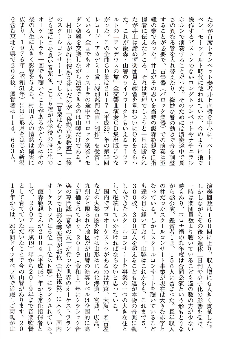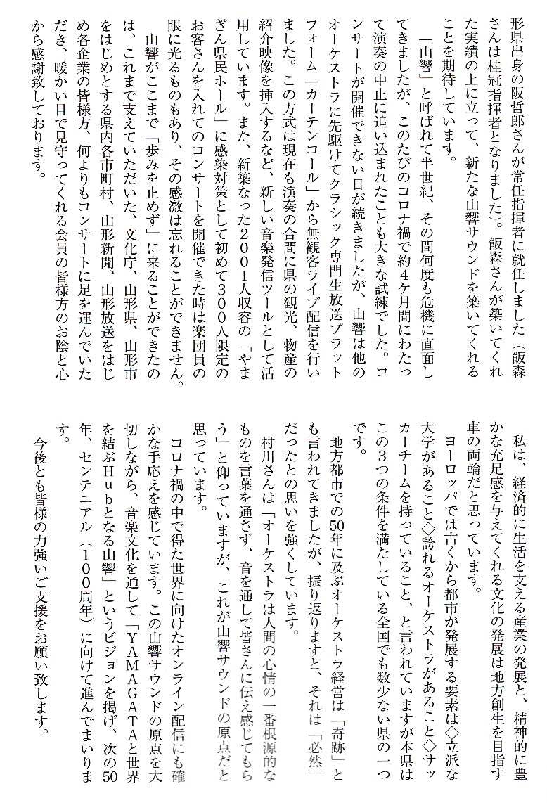 次に来る記事は山形交響楽協会理事長の園部氏による寄稿である。