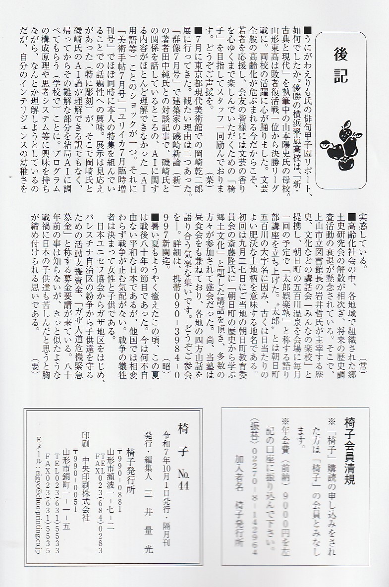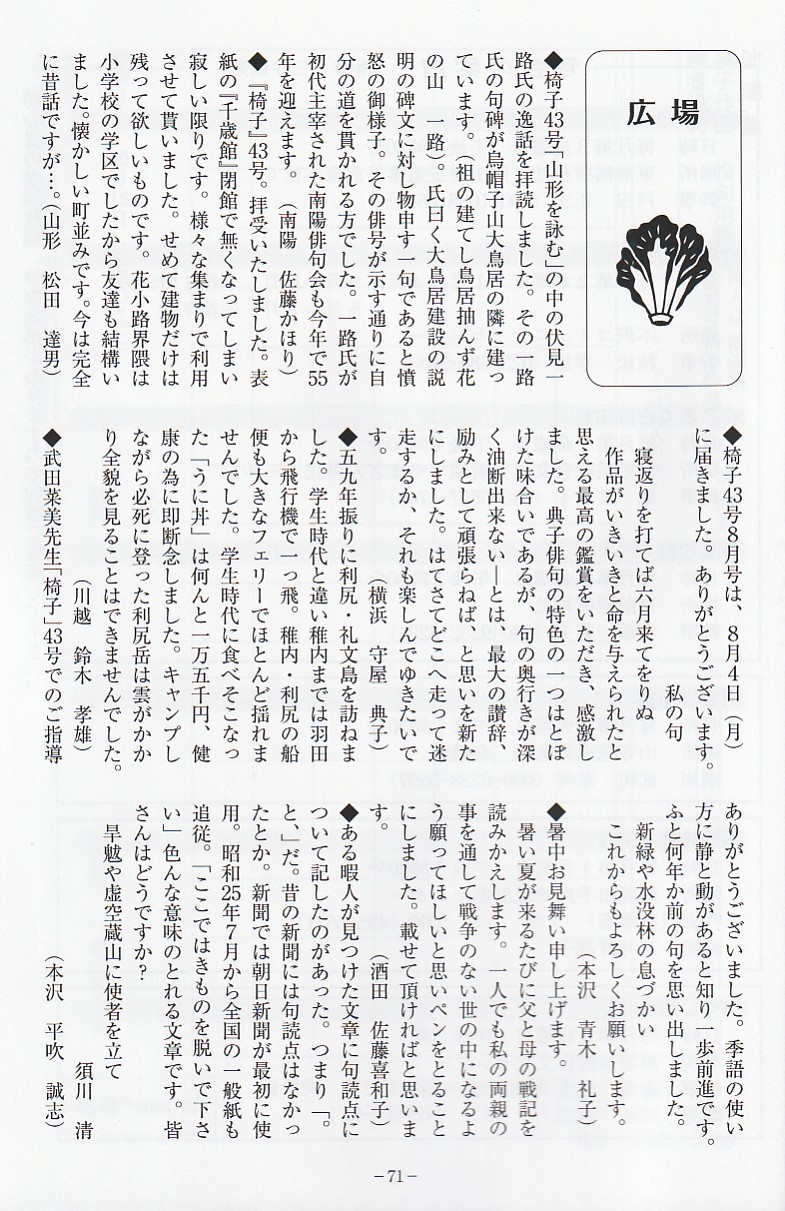 椅子誌44号は次の「広場」のページで読者からの声を載せていますが全国各地に