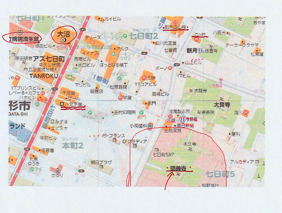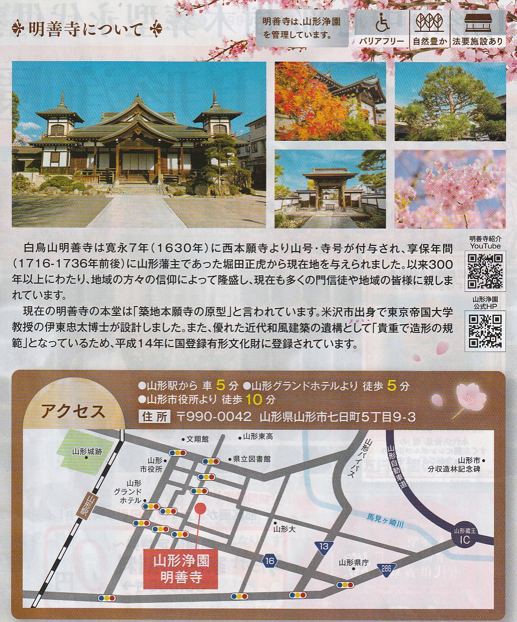さて、山形市の明善寺周辺の地図と寺が発行しているパンフレットを示します。