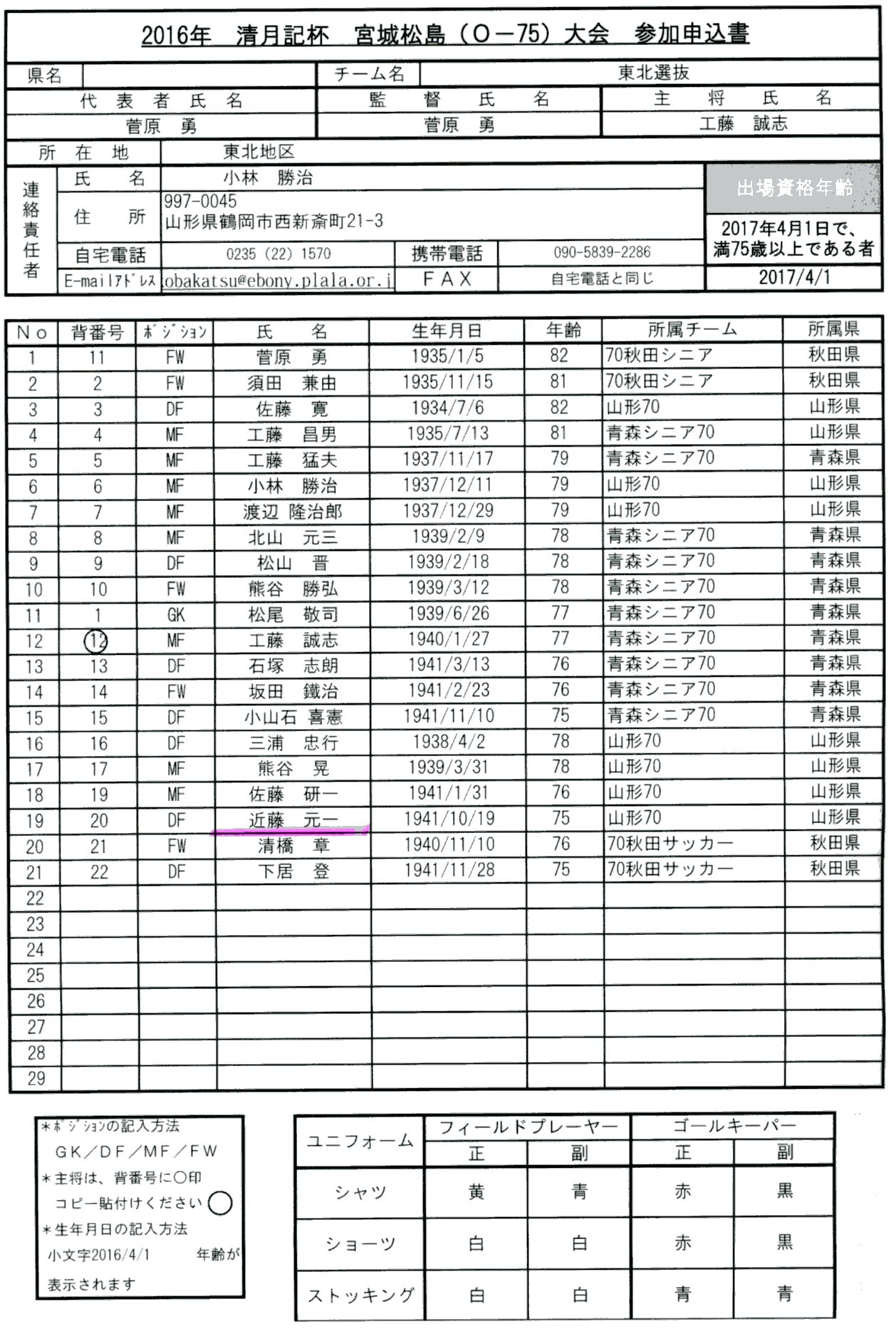 さて、我々東北選抜のメンバー表をお見せする。