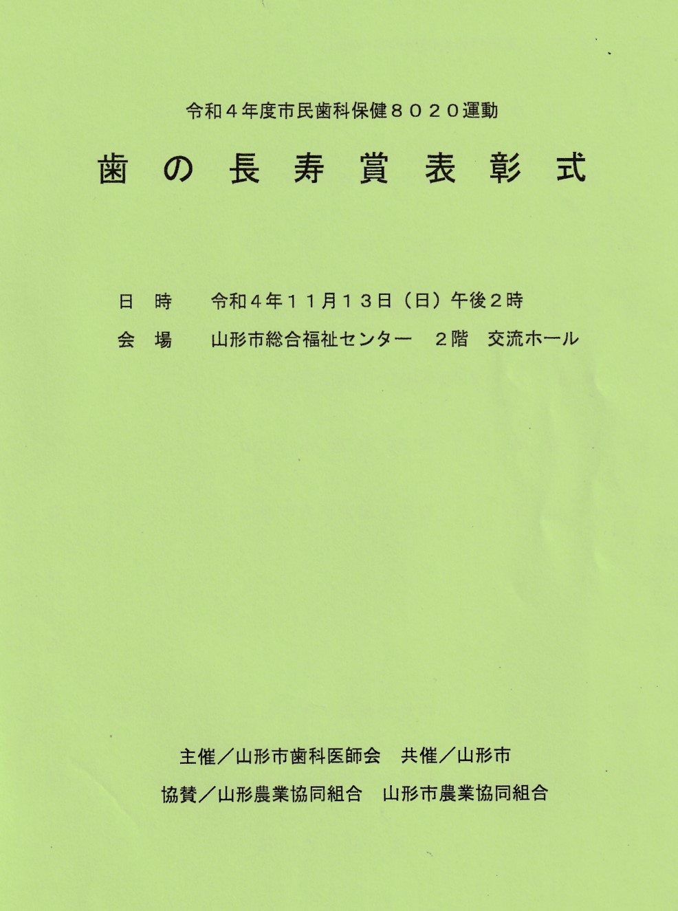 授賞者は山形市長と山形市歯科医師会長の連名でした。