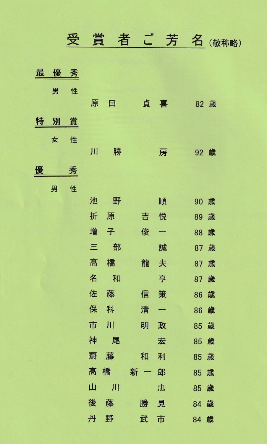 さて、表彰式が行われたときの式次第をお見せします。