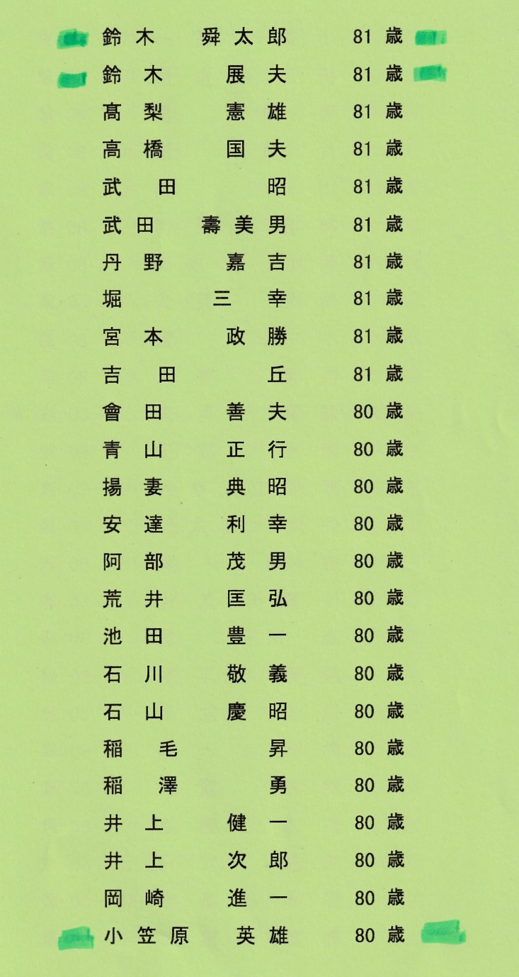 緑色のマークの人が東濤会会員です。会員に該当者が多かったのは良い事