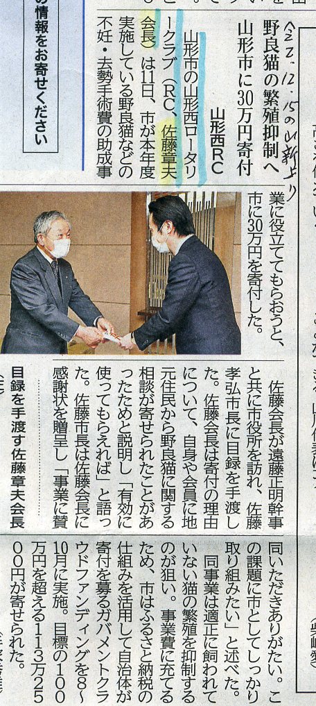 コロナ菌騒動のため外出をひかえて家にいることが多くなり新聞に 目を凝らすようになっている。 ふと朝刊に目をやると次の記事が目にとまった。 令和2年12月15日の山形新聞の記事である。 さっそく山形東濤会のホームページに掲載してみた。 ご覧ください。 戻る