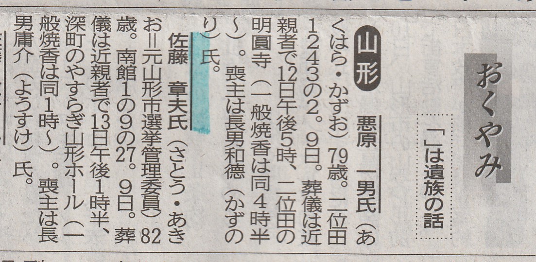 新聞のおくやみ欄の記事です。