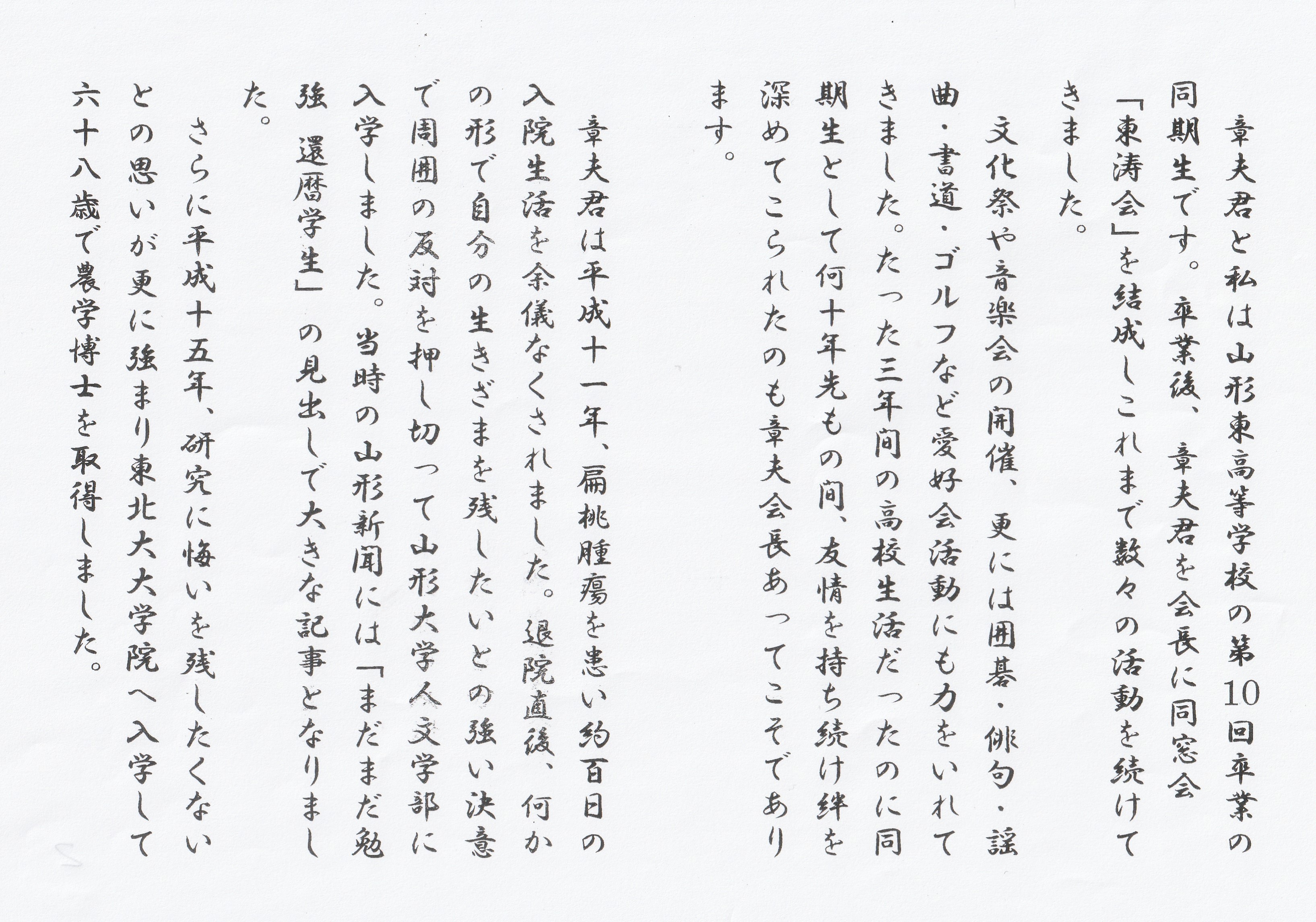東濤会会長を長く務めてくれて私たち山形東高校昭和35年卒業生一同の旗頭と