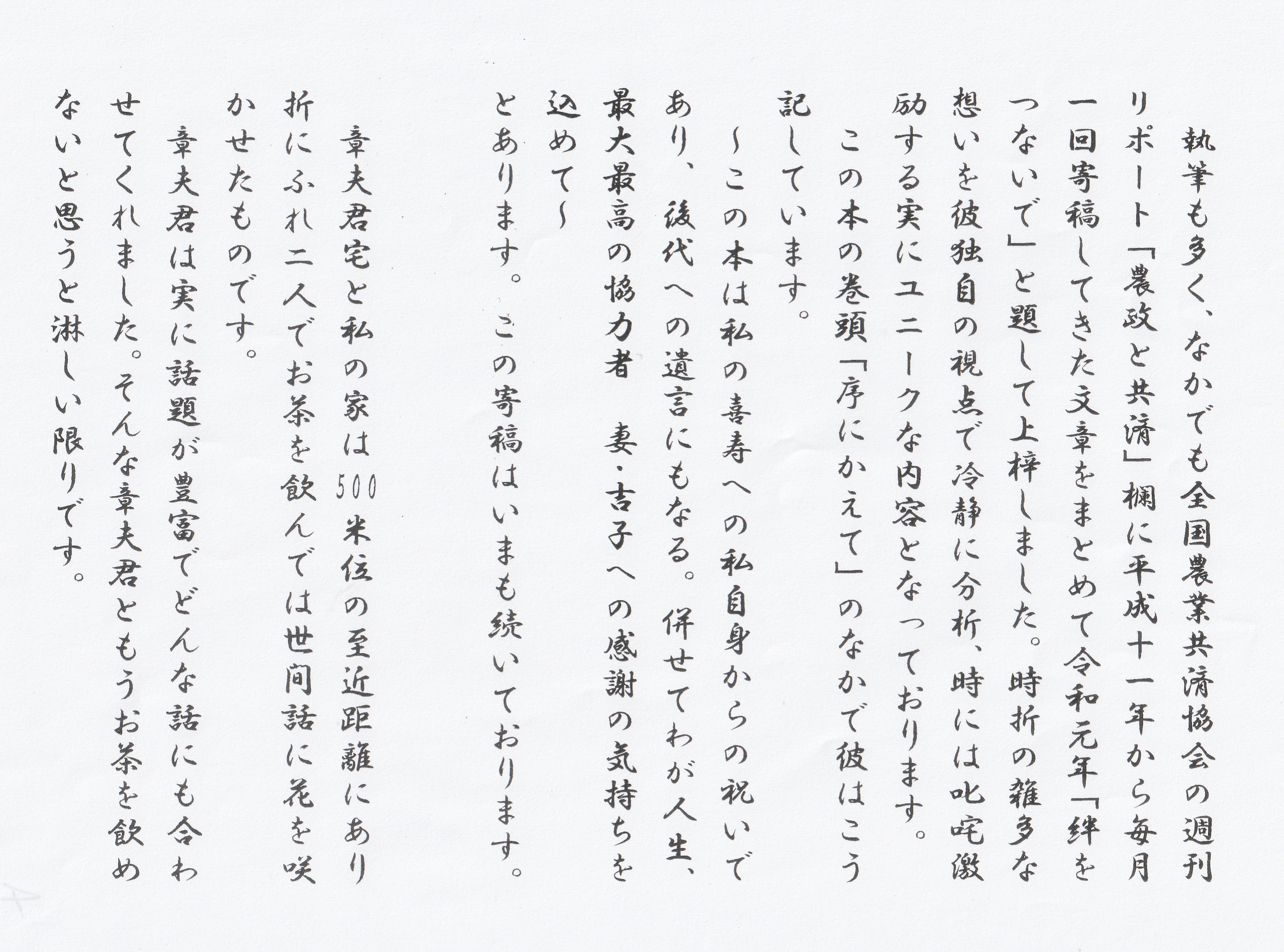 自分の専門の農業の振興に努められ理論と実践を併せた稀有な人物でした。