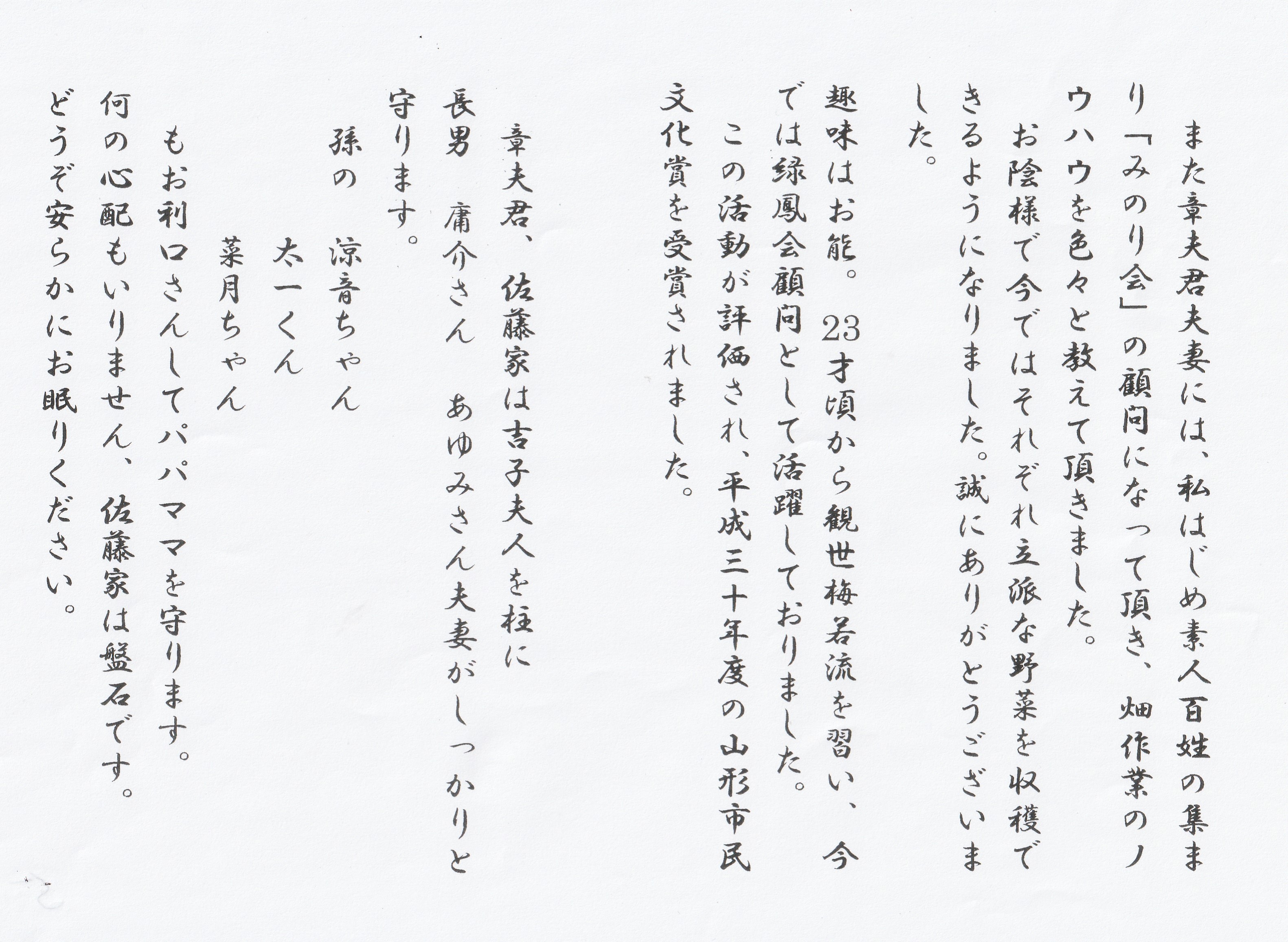 山形市南館土地改良区理事長も務め地域の発展に頑張ってくれました。