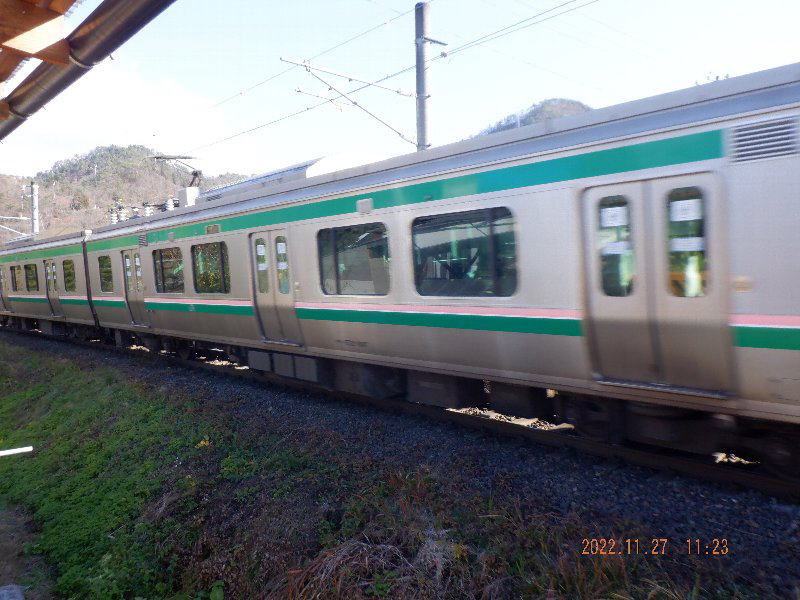 駅がすぐ傍ですから電車はゆっくりとスローに入ってきます。