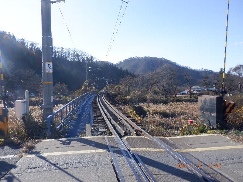 何しろ仙山線のすぐ傍なので時間が来ると遮断機が降りて警報の