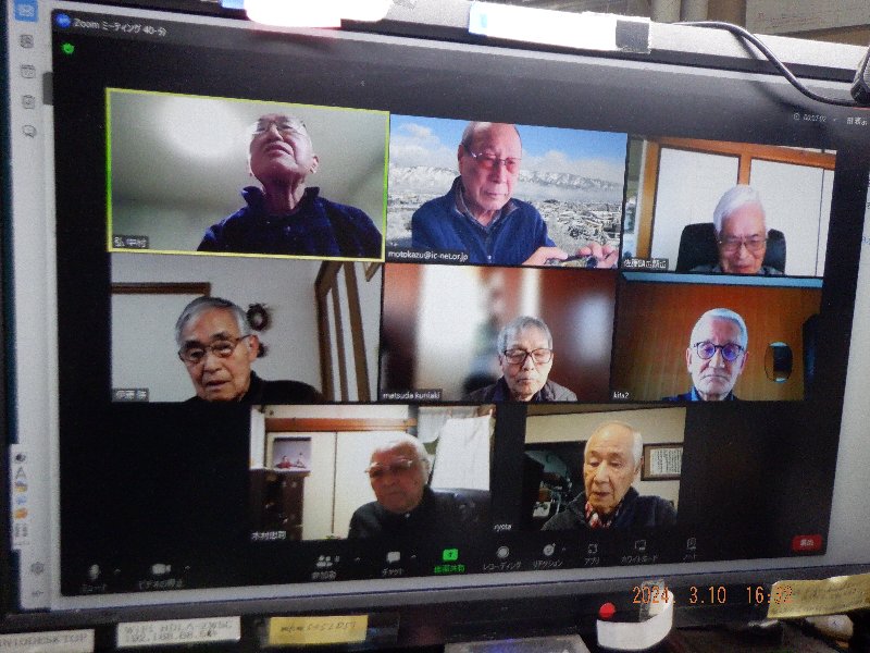 令和6年3月10日午後4時半より恒例のZOOMミニ同窓会が開かれた。
