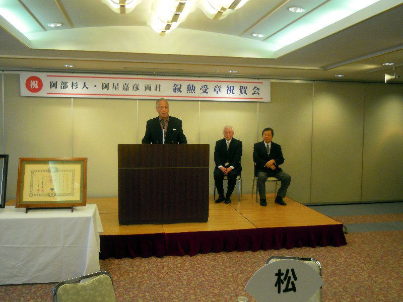 阿部杉人君並びに阿星嘉彦君叙勲受賞祝賀会開催さる