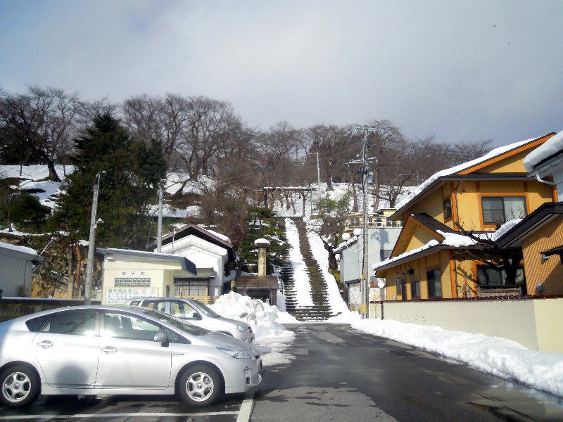 さて町の北側に聳えている八幡神社に昇ろうと入り口に行くと長い階段が