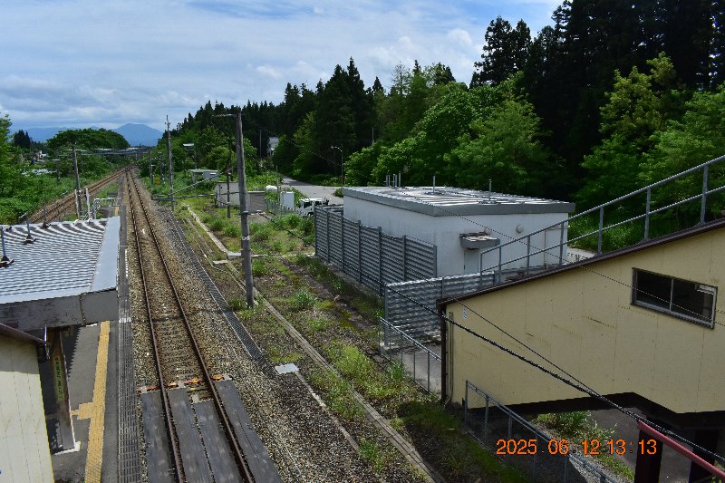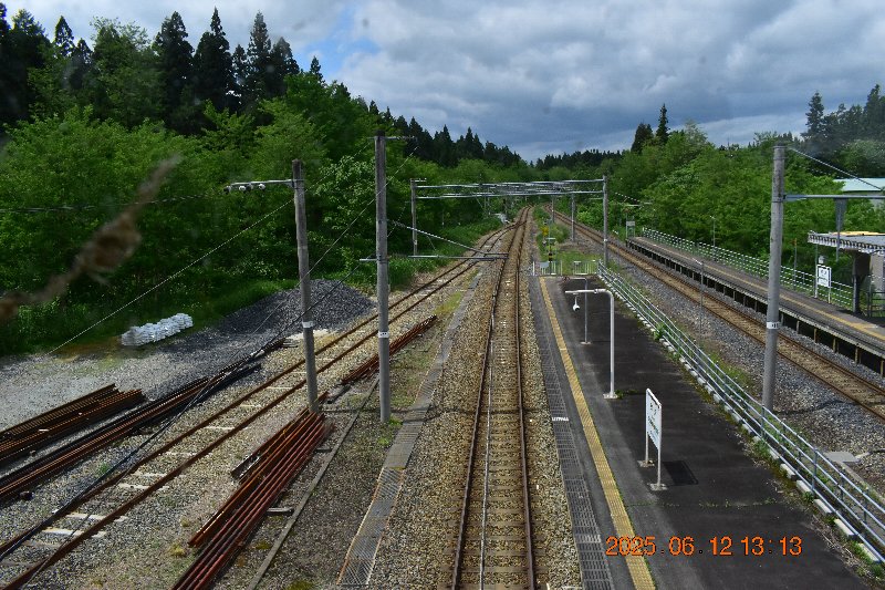 次の写真は新庄・秋田方面の光景です。とにかく線路の両側の樹々の緑の濃いことが