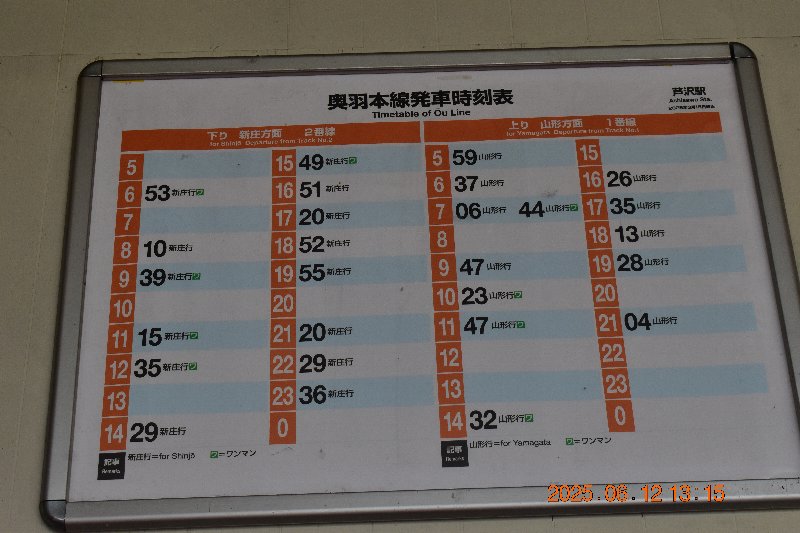 時刻表です。ここから山形市内の高校に通った人は多かったです。