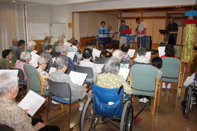 すると施設の方たちが驚くほどお年寄りたちは大きな声で歌ってくれます。