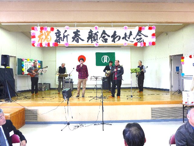 お正月にはいつも呼ばれて演奏してきます。写真右奥のギターは東濤会会員の
