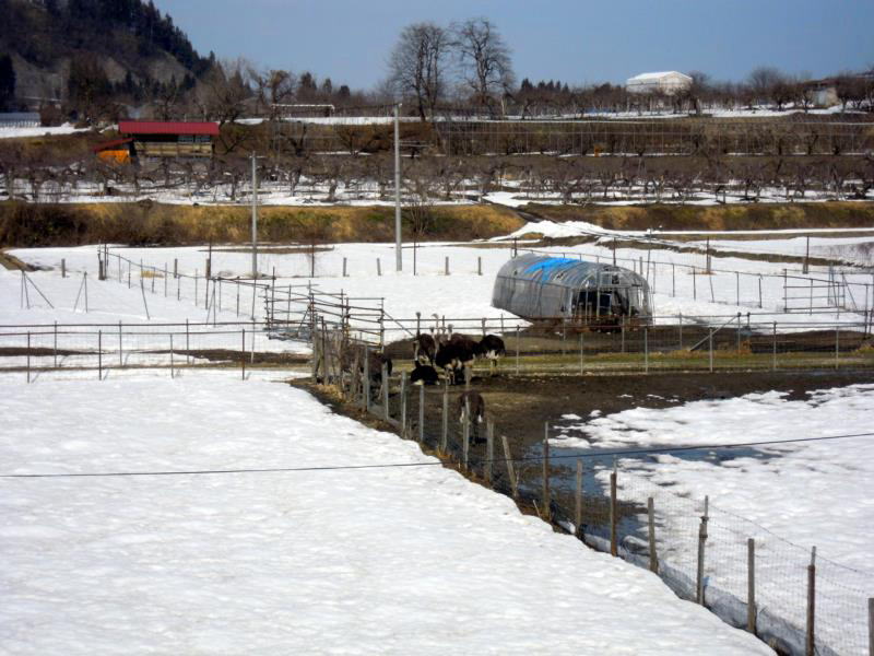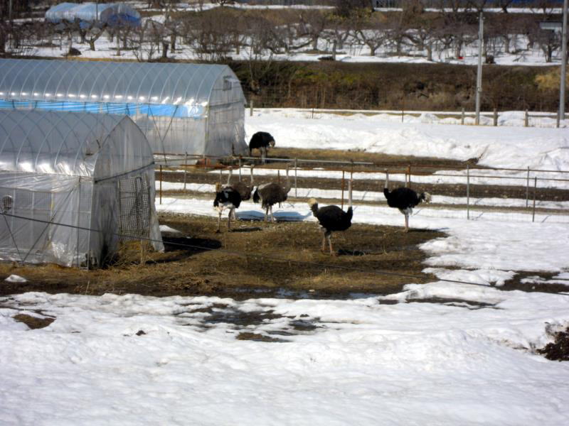 春になればダチョウたちはここから更に西の奥にある白倉スキー場のダチョウ園に