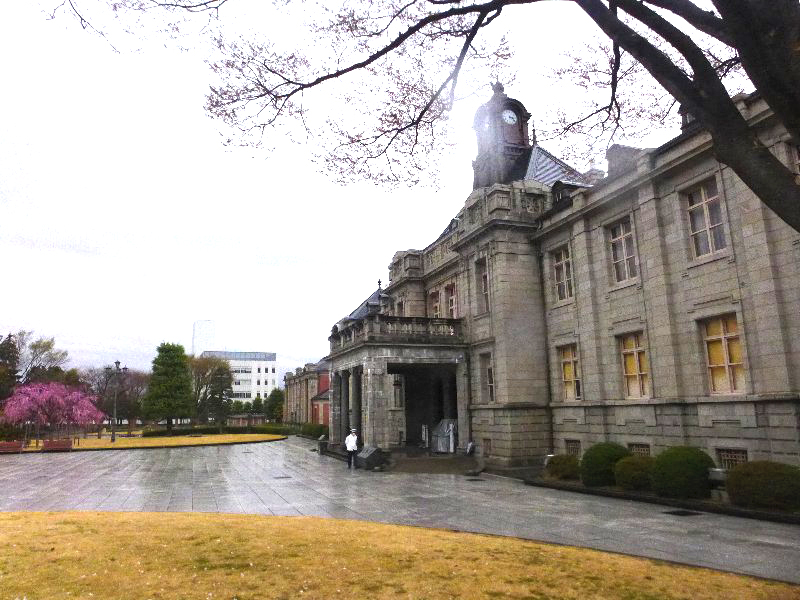周囲は桜と紅梅が咲き乱れているが生憎今日4月14日は暗く寒い天候の日となってしまった。