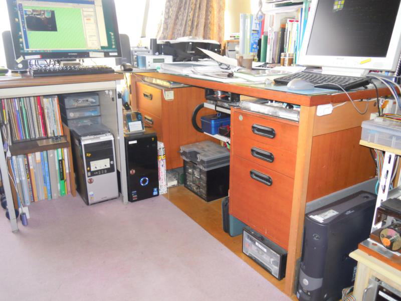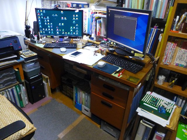 私の机の左側は作業用のWindowsマシンにして右側はLinuxによるサー
