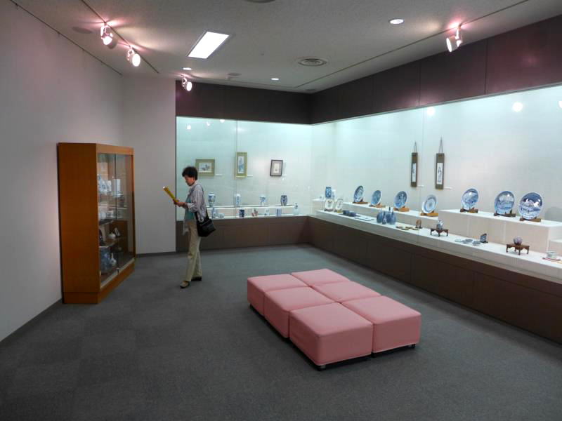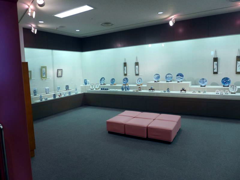 展示場は広いガラス棚で構成されている。