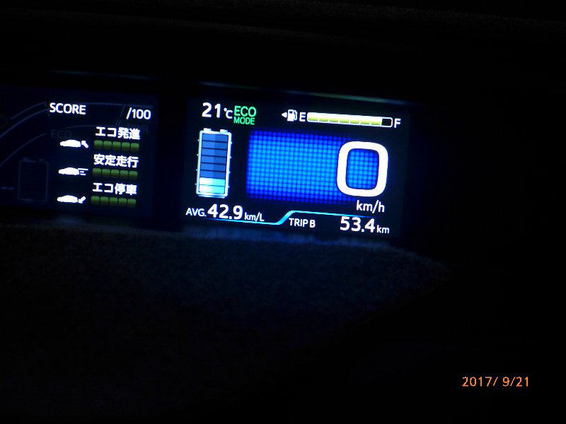 燃費は42.9km/l となっているのがお判りでしょう。長距離時は普通日常的な値です。