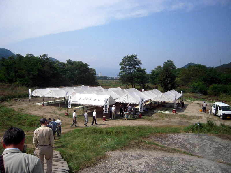 会場のテント村に到着した。ここは地元の商店が設営して芋煮を提供している