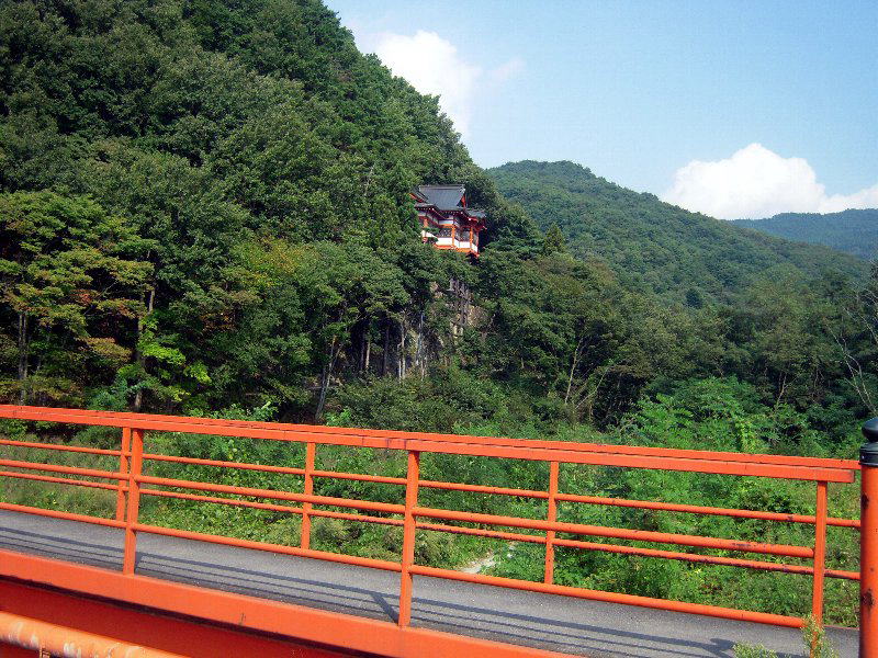 ここで周囲の景色を見てみよう。名所唐松観音が緑の中に映えている。