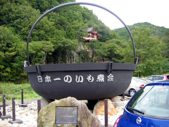 会場には日本一の芋煮会で使われた初代の鍋が飾られています。