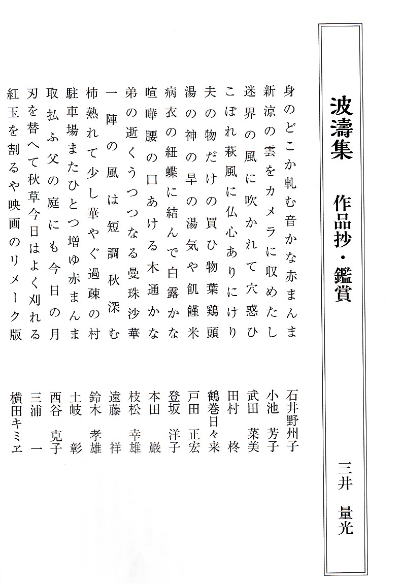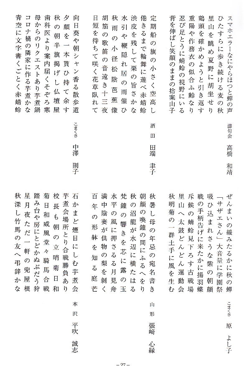 東濤会会員が多く投句しているのですが名前はペンネームとなっているので