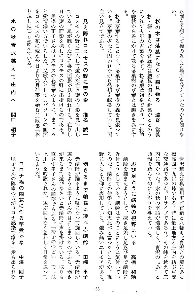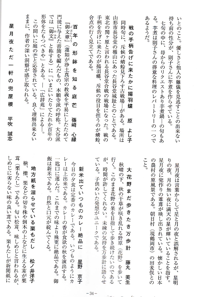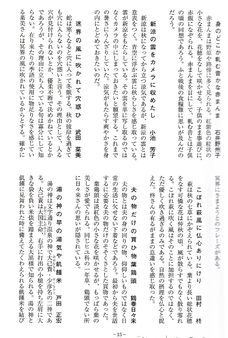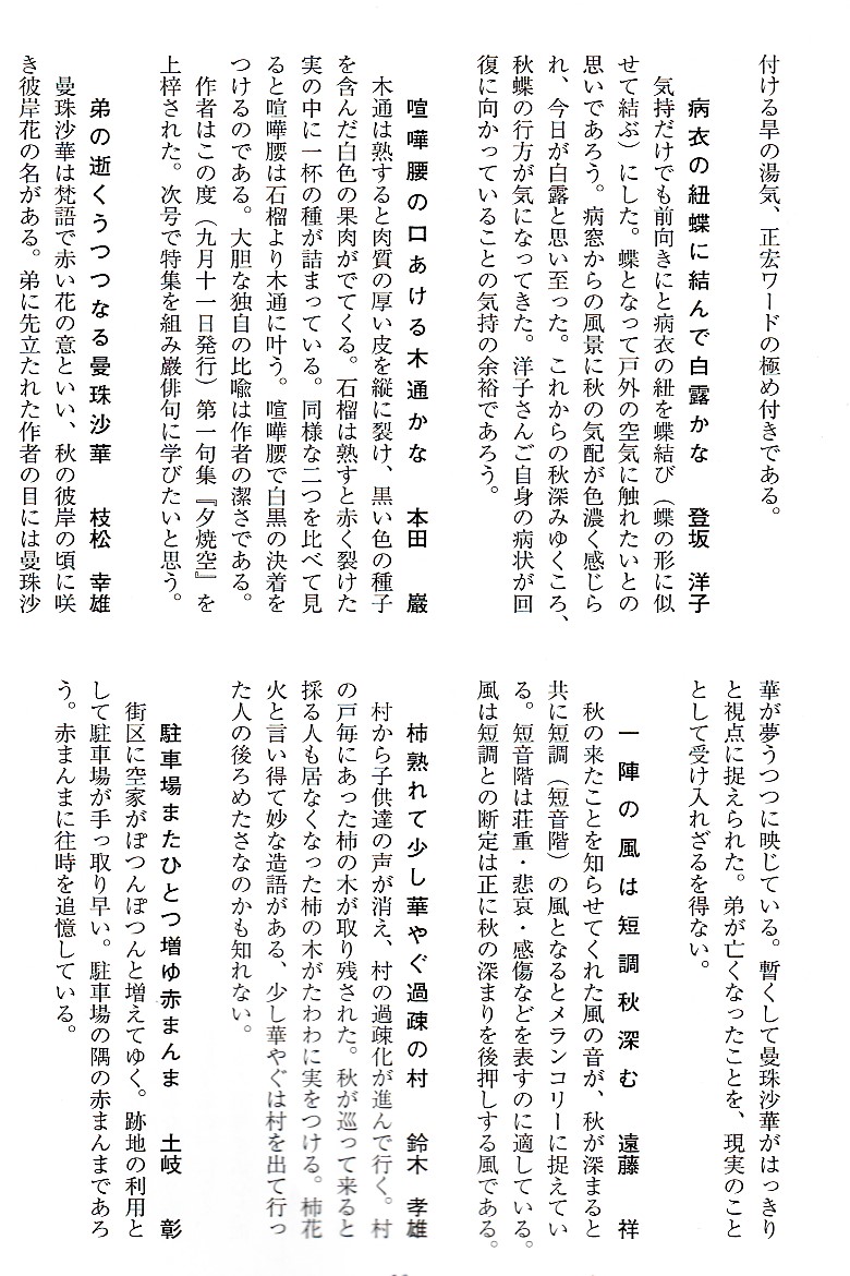 次のページからは各会員からの代表句を先行して一句一句に丁寧な評を