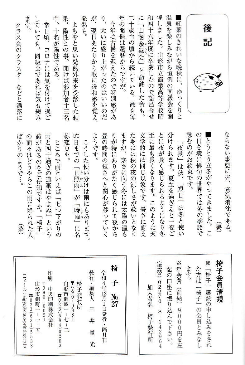 最後に編集後記がきて27号の「椅子」誌も終わります。ご苦労様でした。