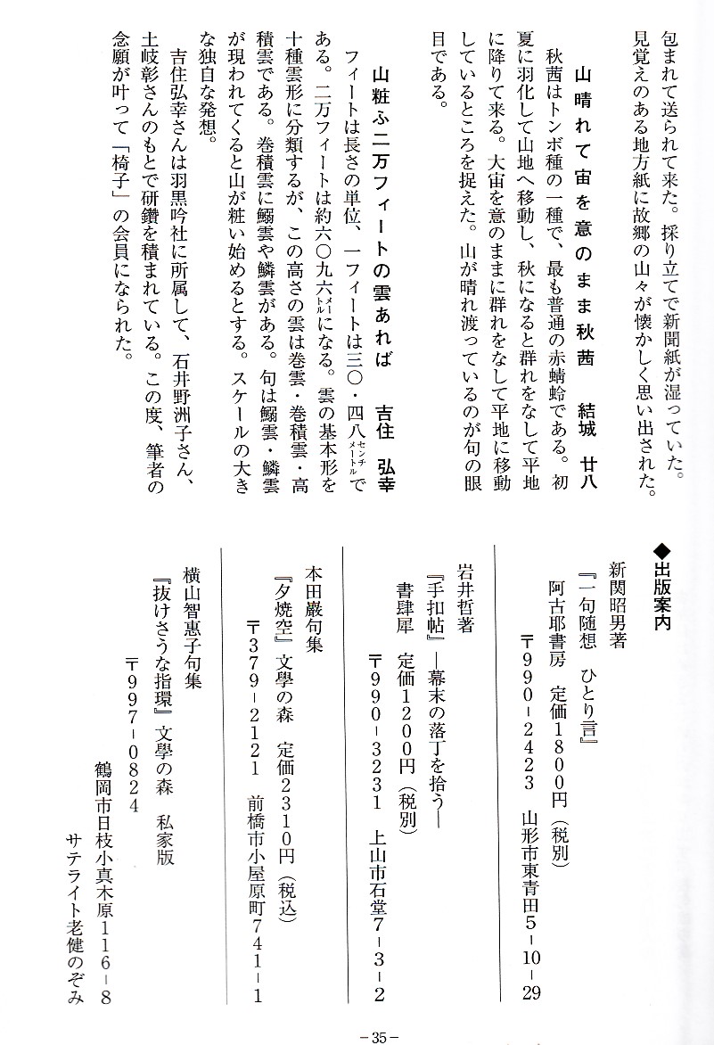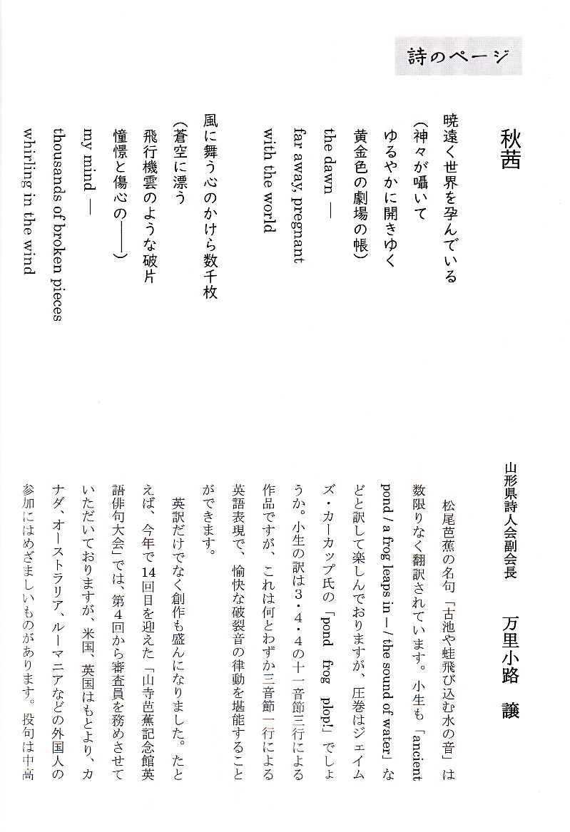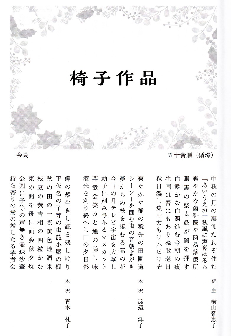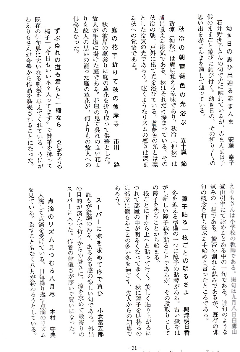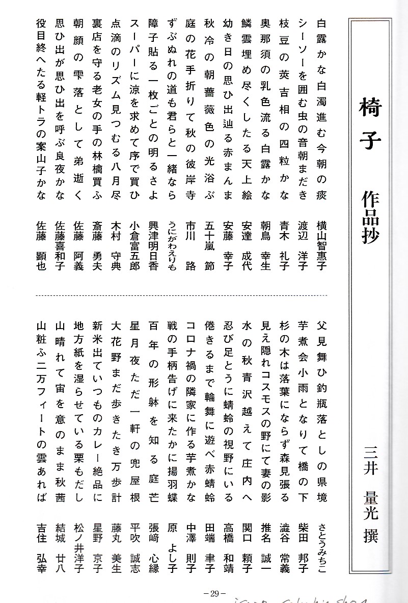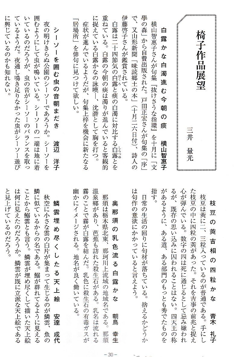 俳句誌の中で詩を鑑賞できるのもユニークでこの椅子誌を特色づけている。