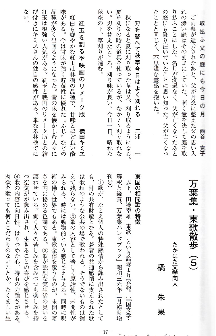 この万葉集・東歌散歩もこの椅子誌を特色づけている寄稿文である。