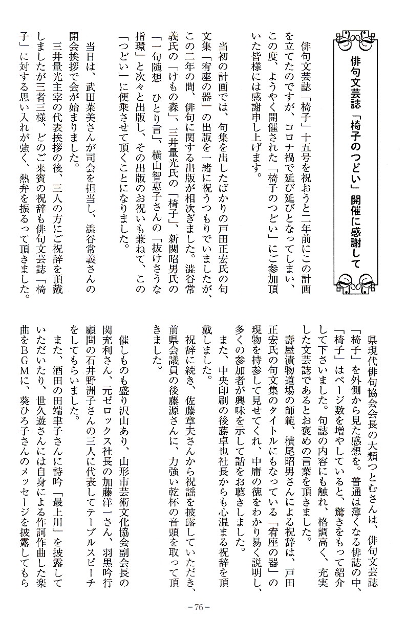 特色ある俳句誌として注目を浴びている俳句誌「椅子」の第25号が発刊された。