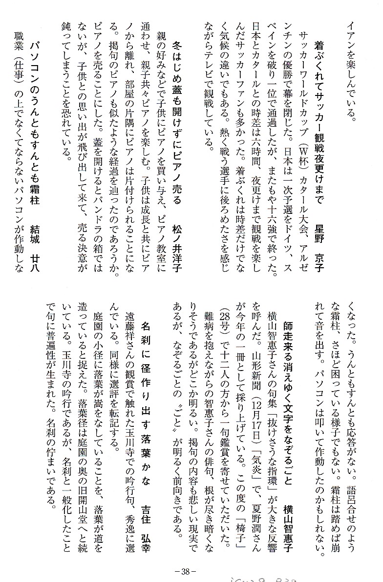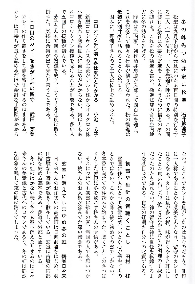 次からは各自の作品への選者からの講評と解説のページとなります。