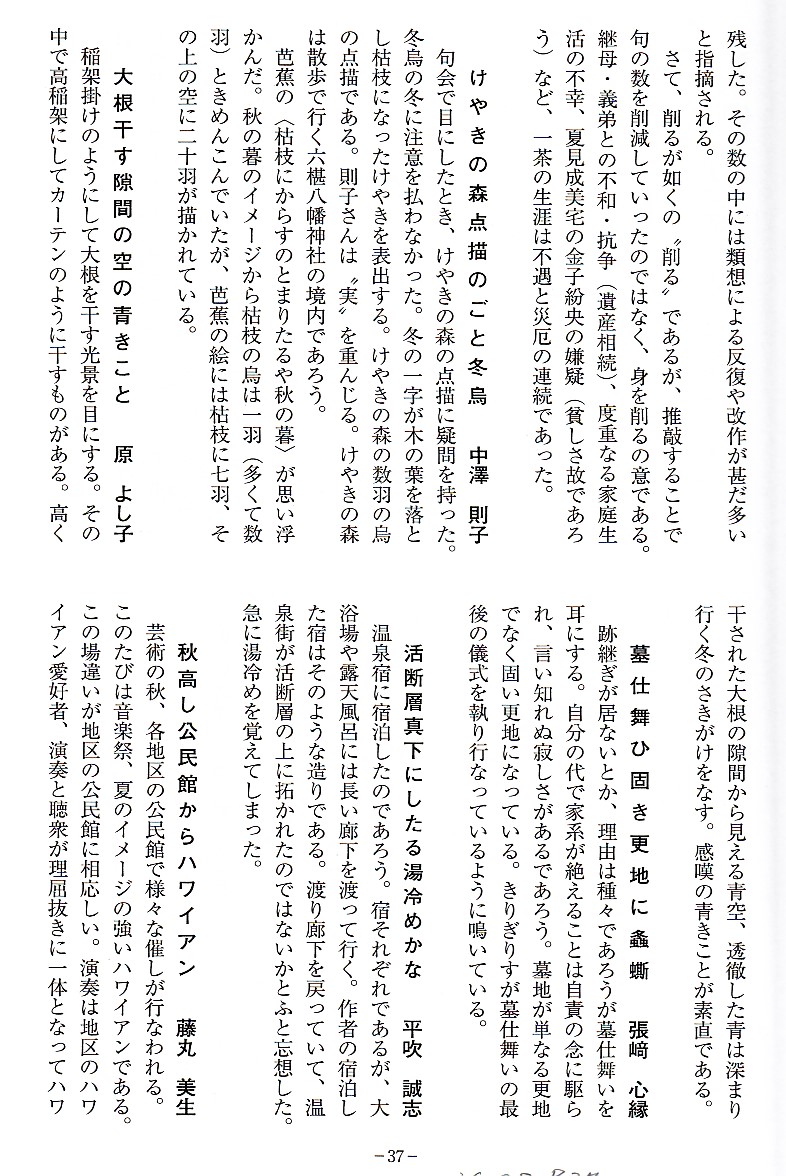 俳句を嗜む人だけでなく広い分野を網羅した随想や随筆、そして詩歌までが