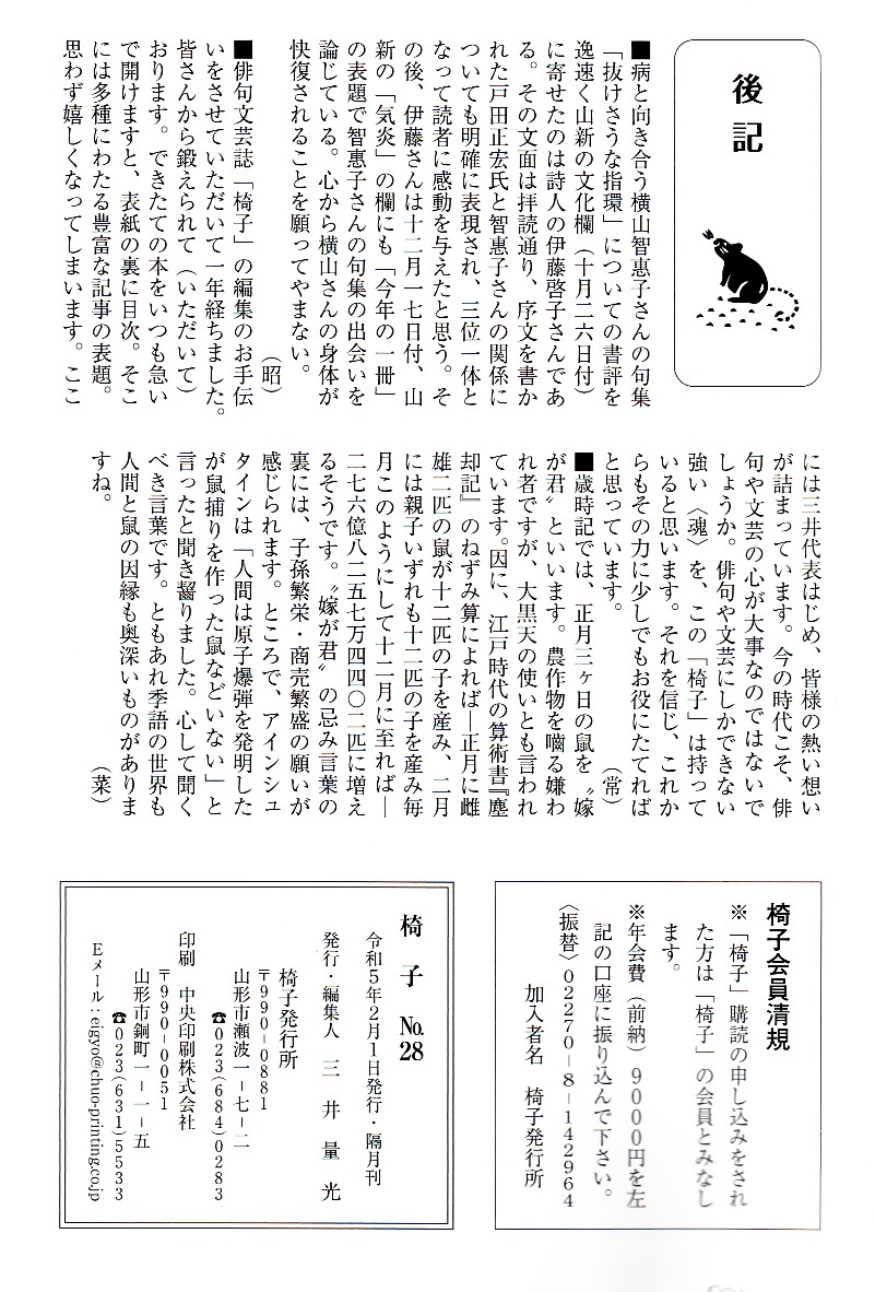 俳句誌「椅子」が2月1日に第28号として発刊された。