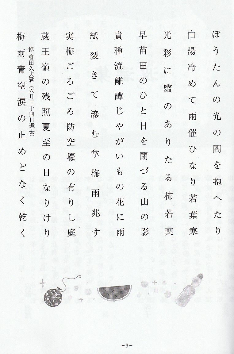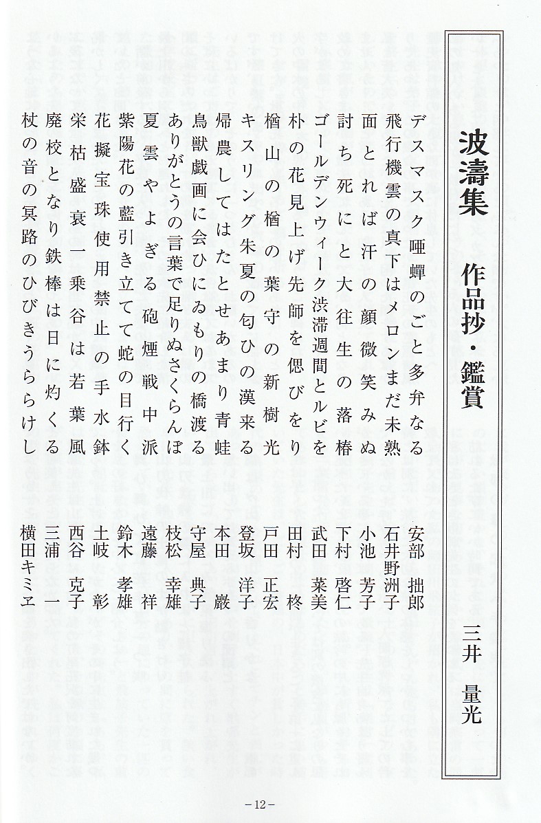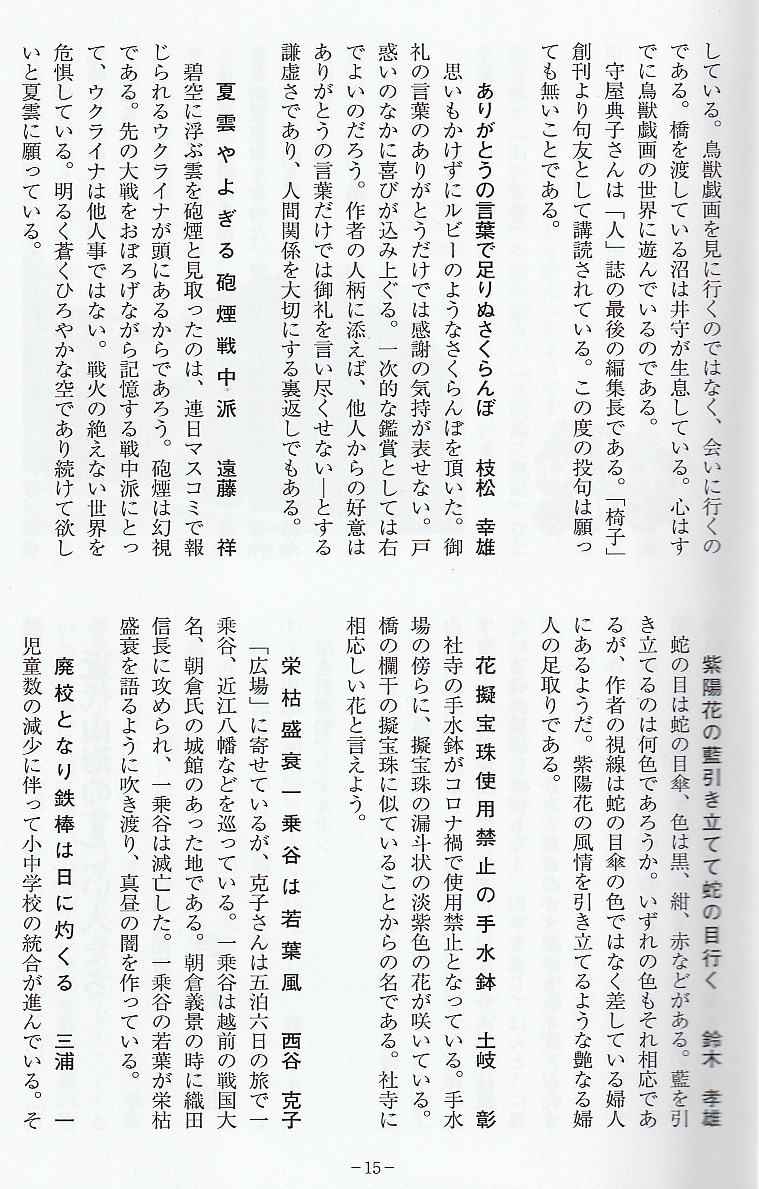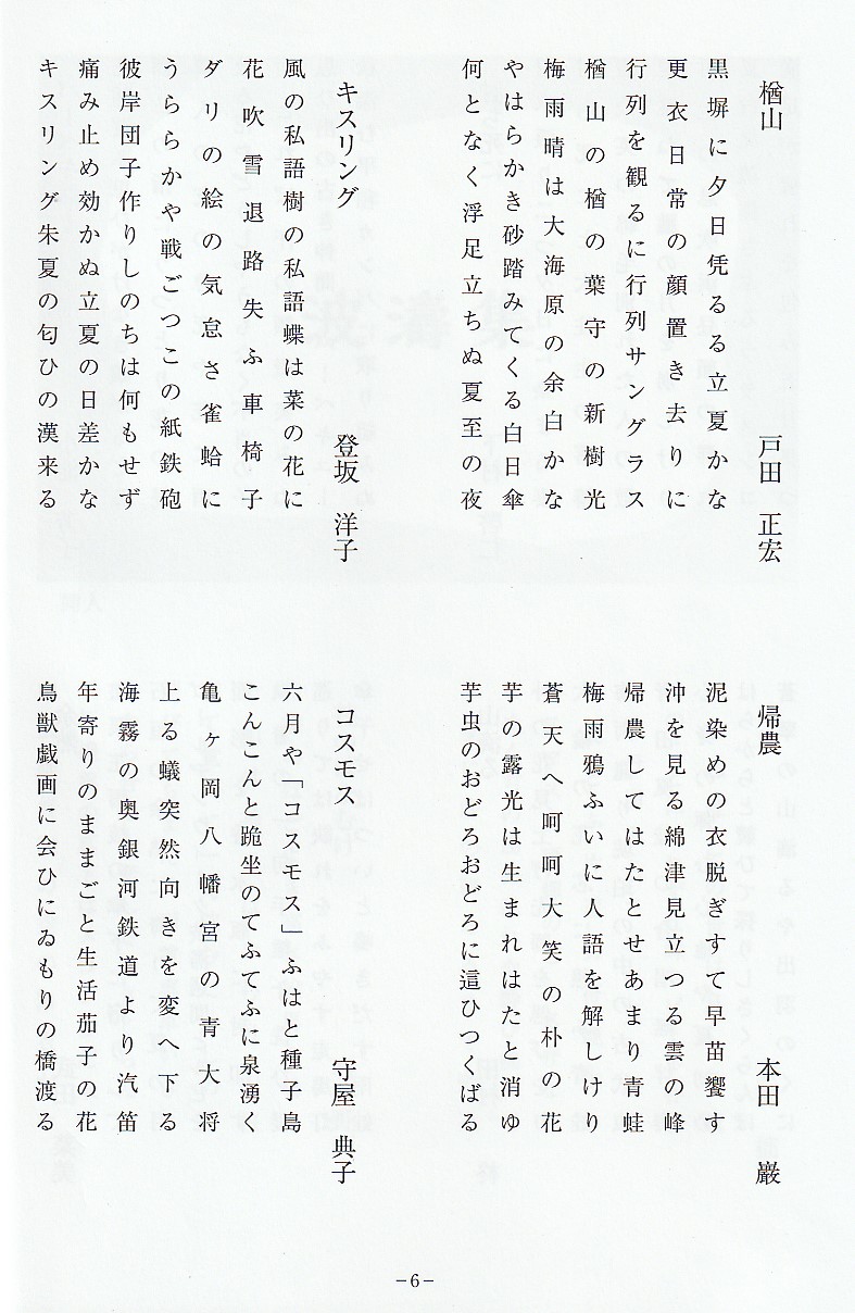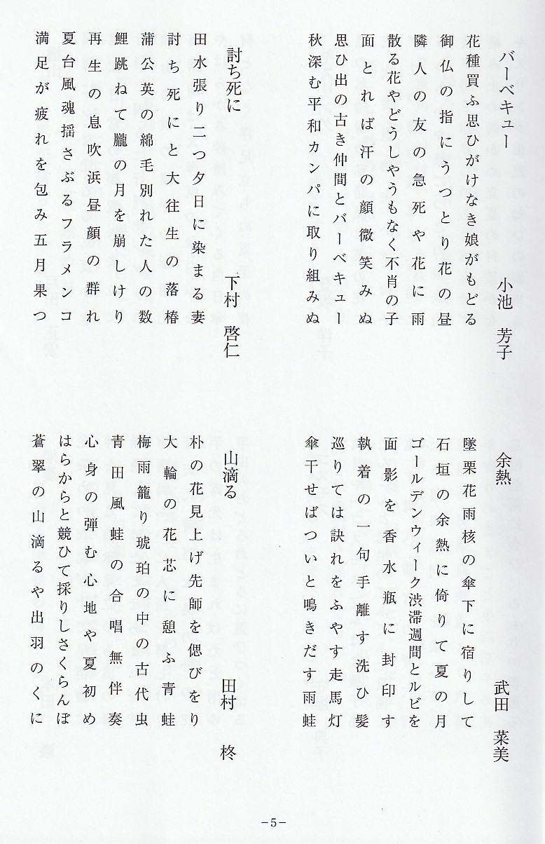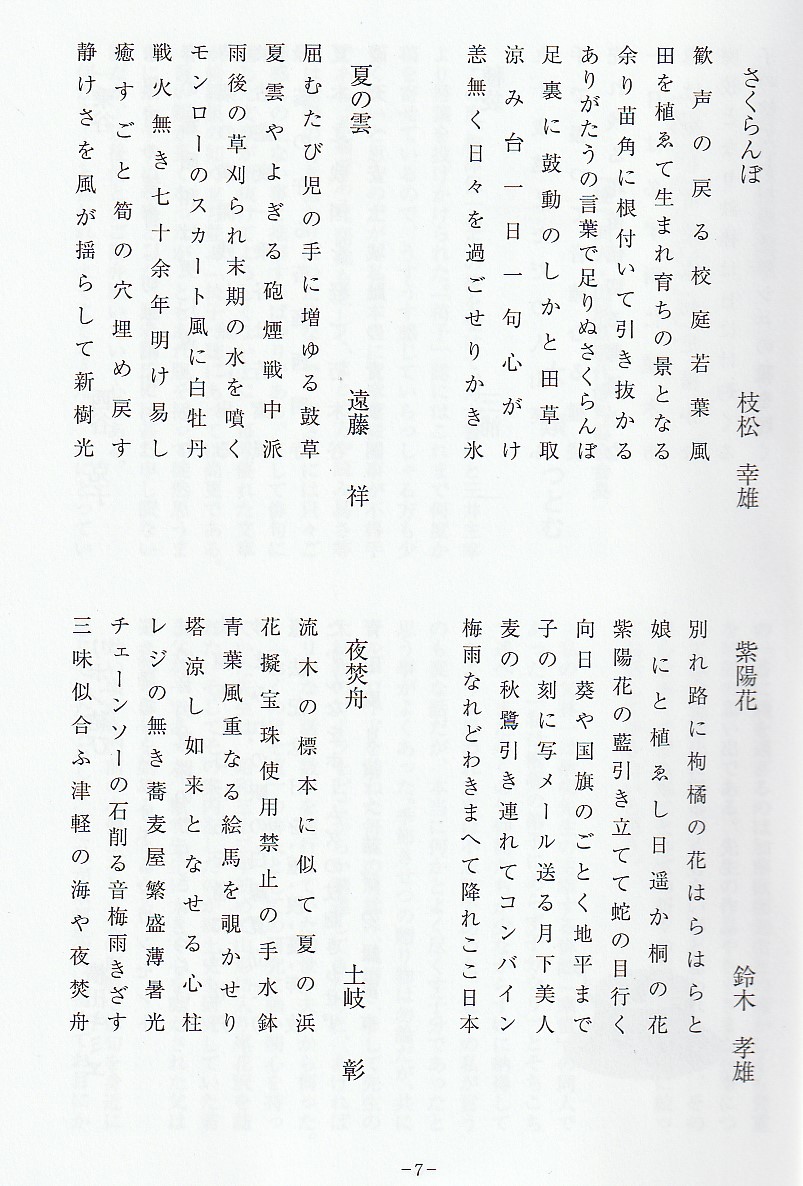 次は本誌の特色である詩歌のコーナーです。俳句を嗜む人も詩歌が醸し出す