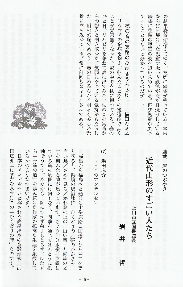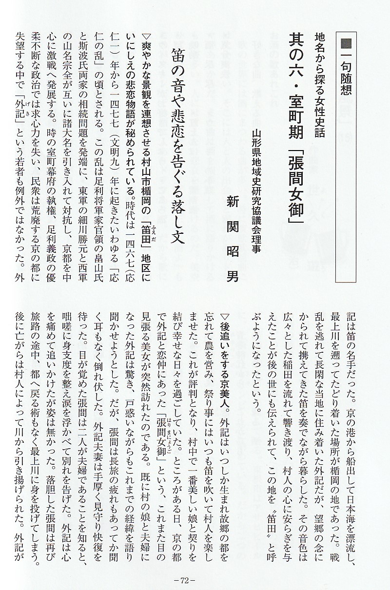 山形県の郷土史や風土史の権威者である板垣氏の連載記事です。
