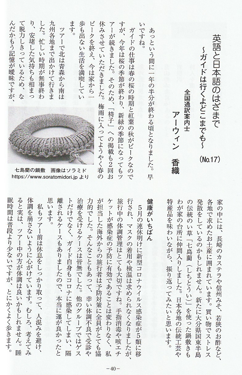 通訳をしながら観光ガイトを努めておられる方のユニークな記事で