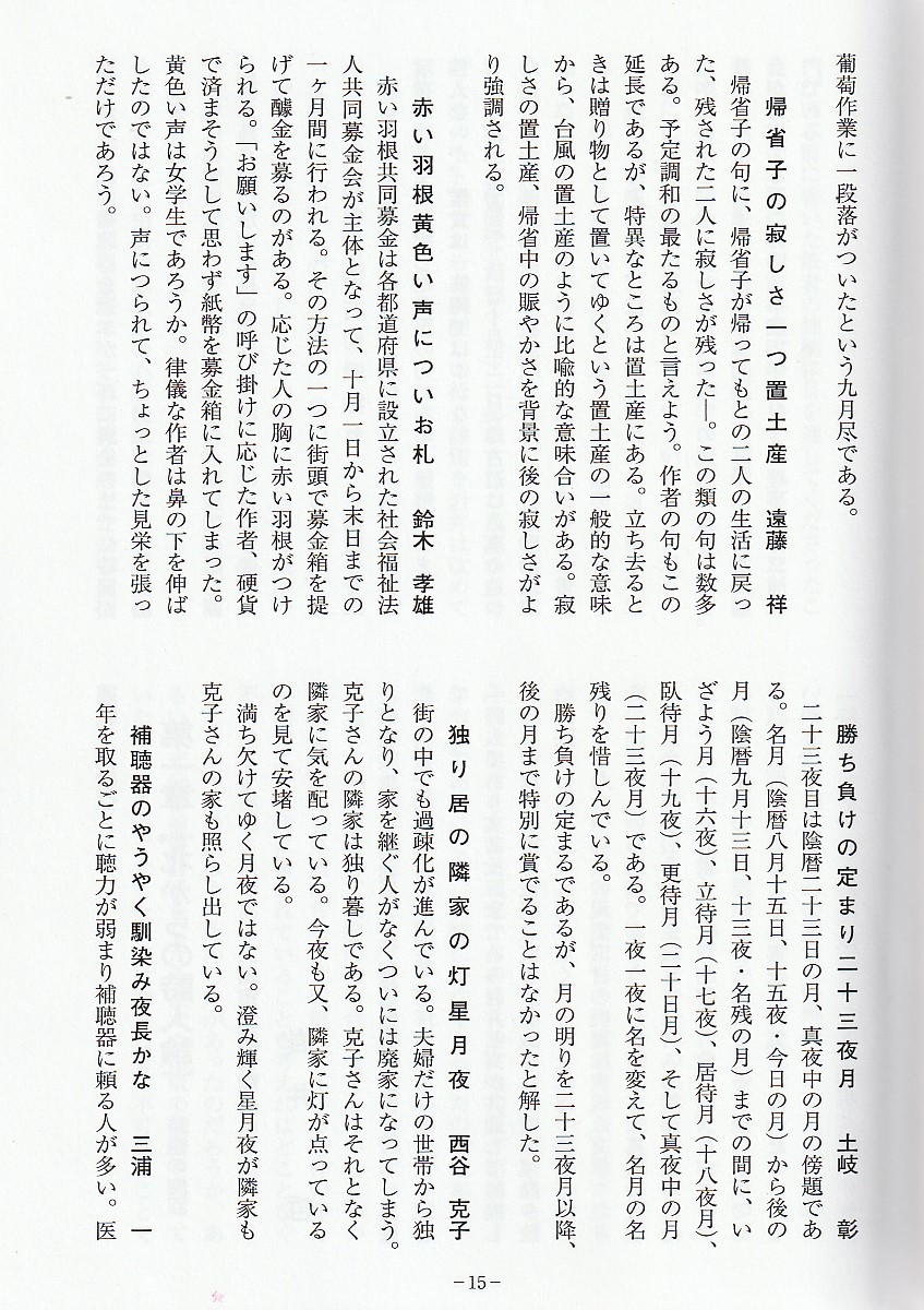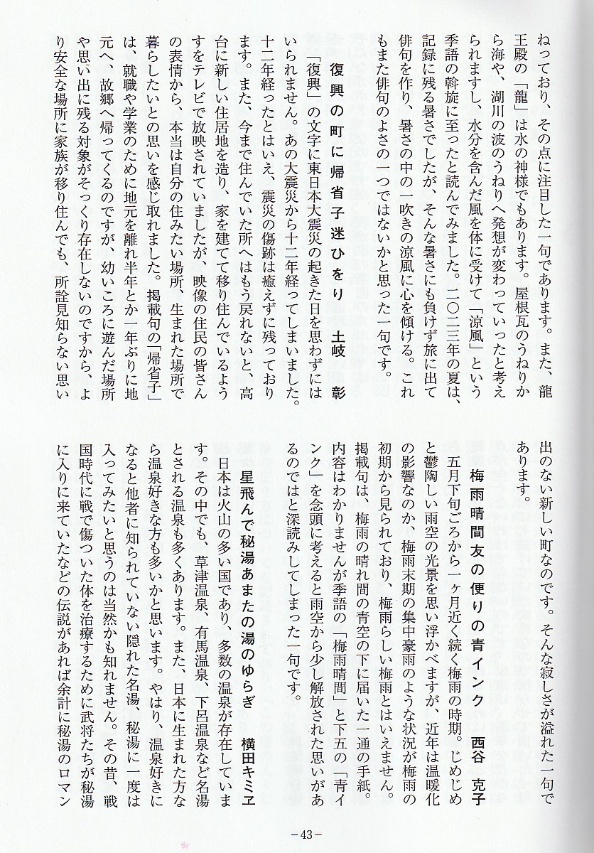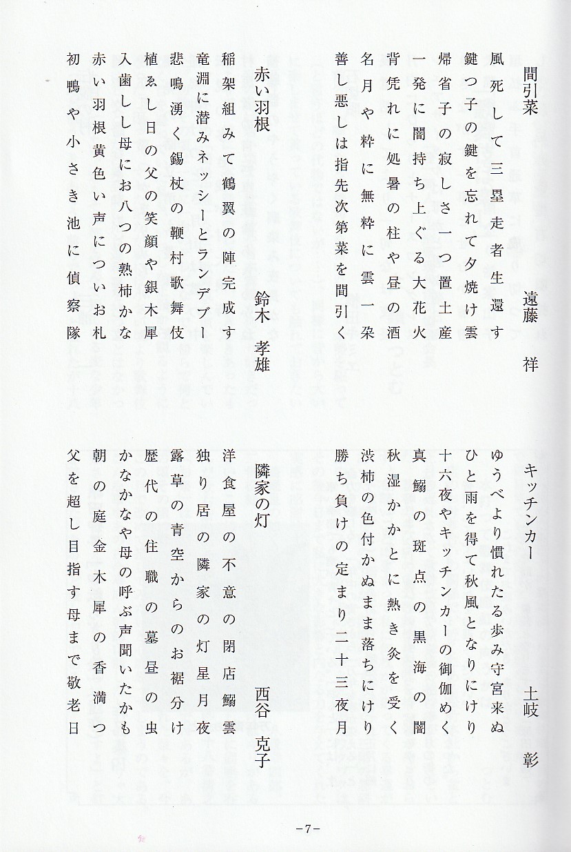 ここからは会員が投句した中から選んだ七句を紹介します。