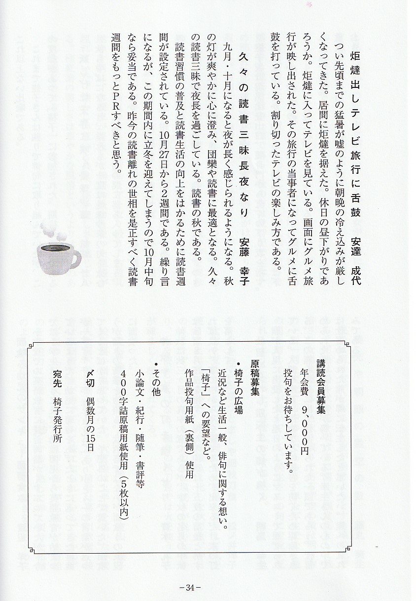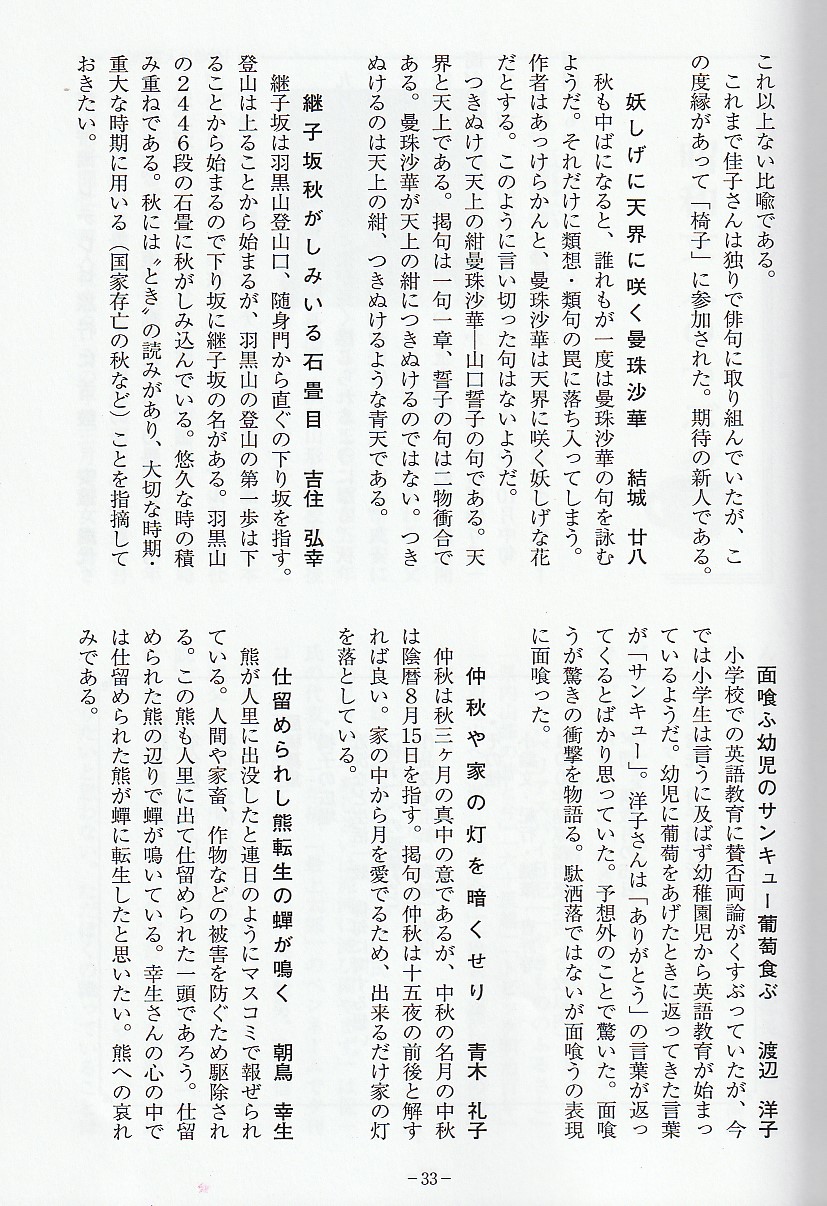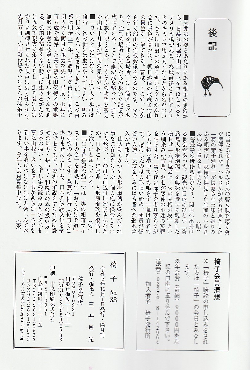 三井量光君主宰俳句誌「椅子」33号発刊さる